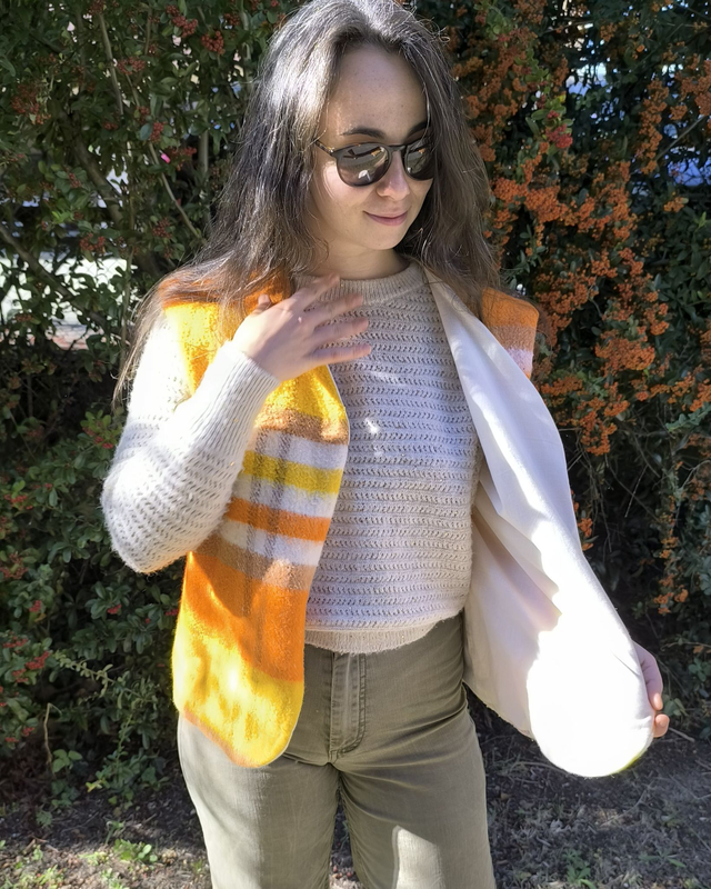 Gilet de berger carreau orange/jaune