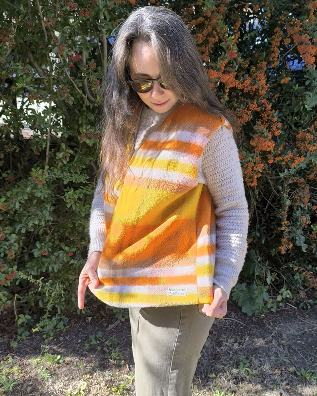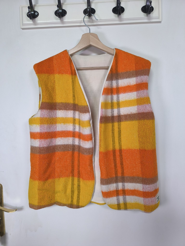 Gilets de berger confectionnés à partir de linge de maison de seconde main ♻️