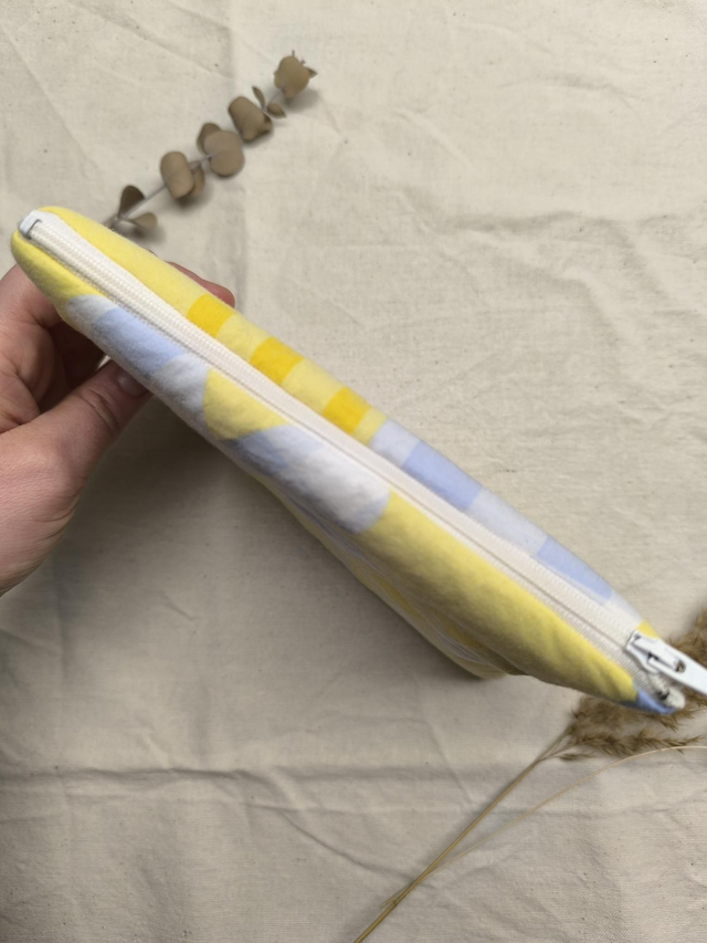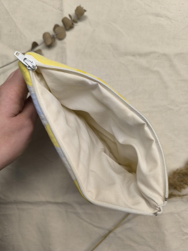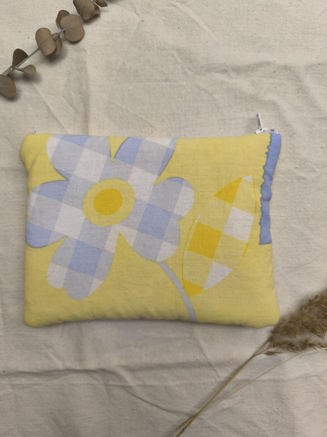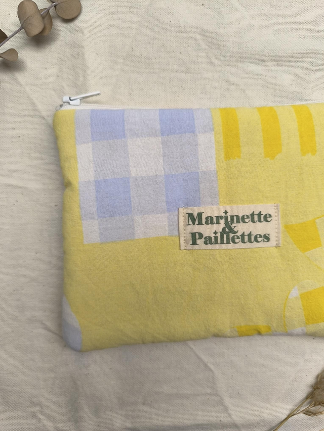 Pochette upcyclée - bleue et jaune