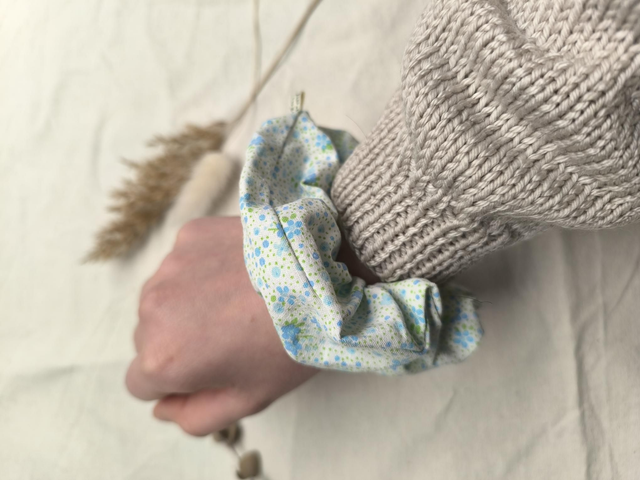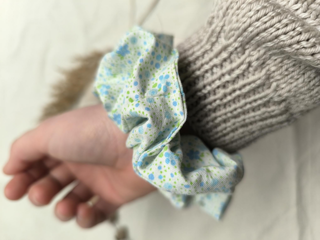 Chouchou upcyclé à fleurs bleues et vertes