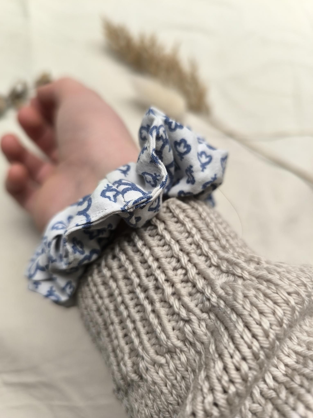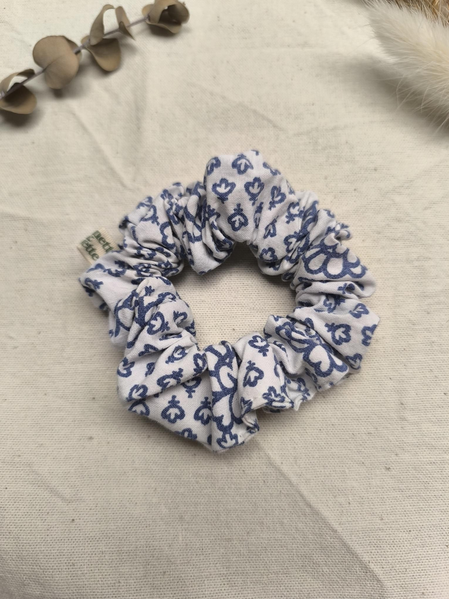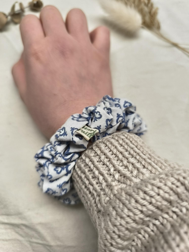 Chouchou upcyclé à motifs bleus