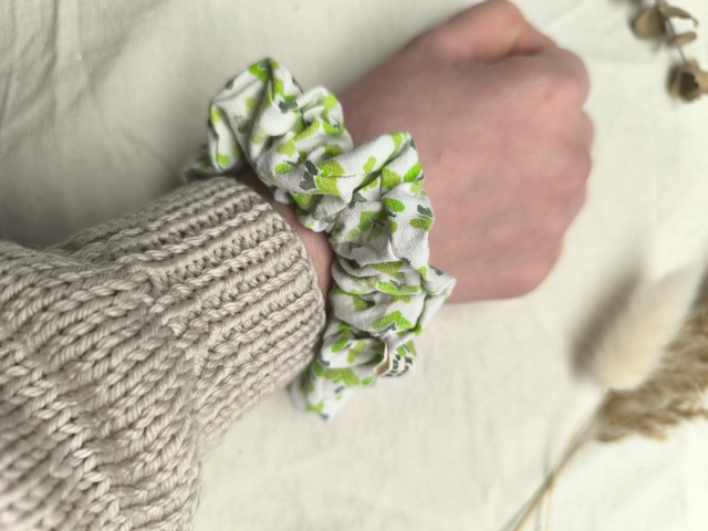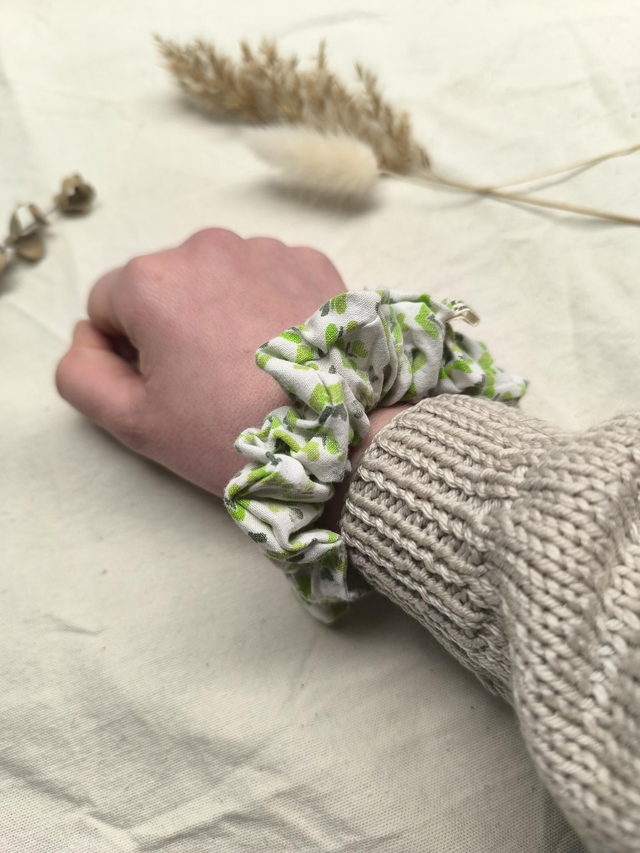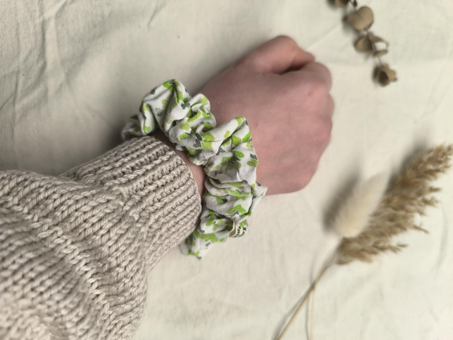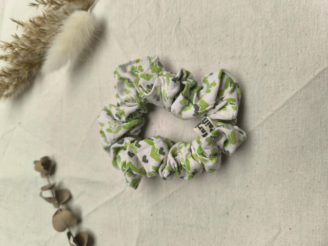 Chouchou upcyclé à motifs verts