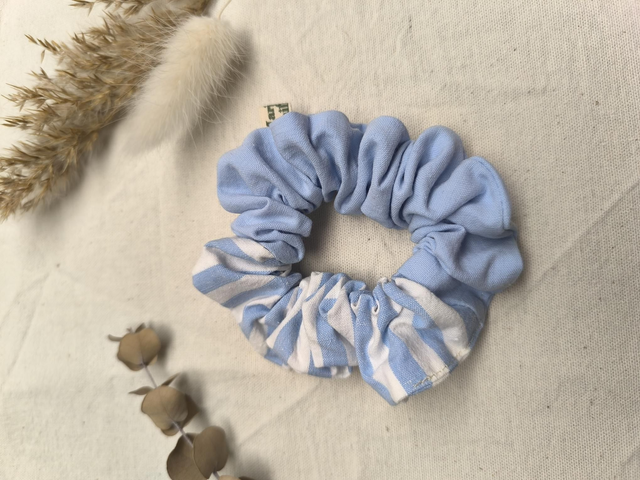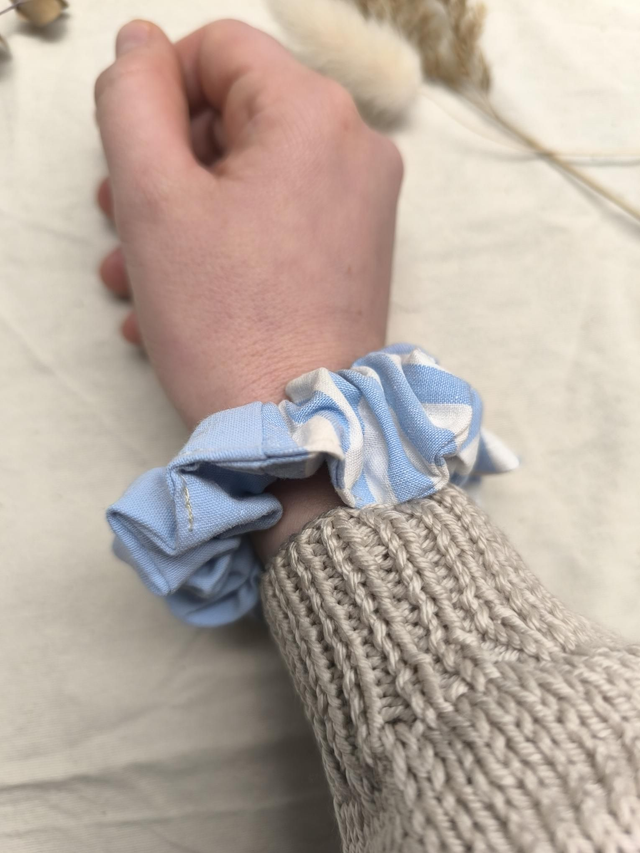 Chouchou upcyclé rayé bleu