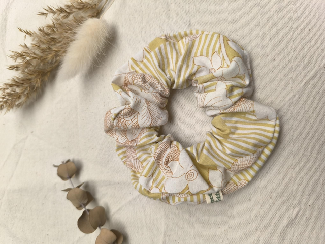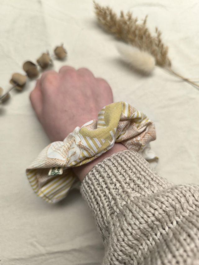 Chouchou upcyclé rayé ocre